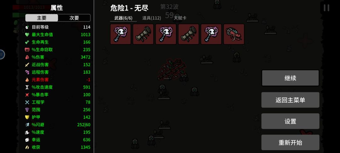 开局闪避优先拉到60,属性优先级:远程伤害和吸血→移动速度和护甲→其它,生命有鬼杖和吃材料加血随便造。