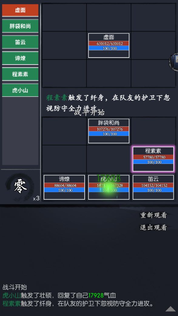 主角攻击最高,虎小山攻击最低,素素的攻击别超了。平A只会打前排,技能打主角+小山,加上笛云心法,强一批