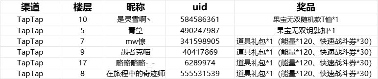 三等奖(5名):道具礼包*1(能量*120、快速战斗券*30)