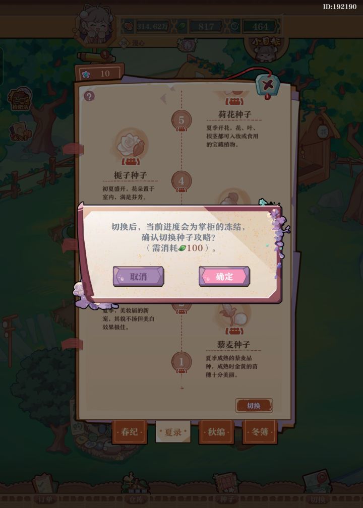 之前一直以为是只有换了季节才能换兑换对应的种子,把春季的种子都换了才注意到这个切换的功能。