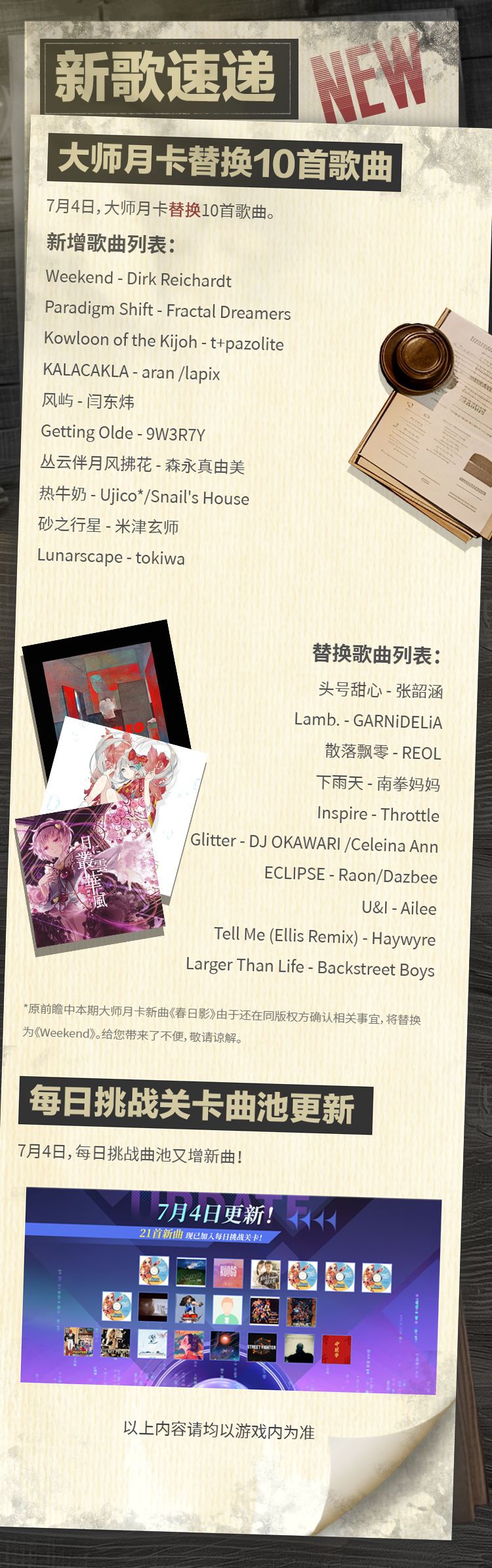 新歌速递 | 大师月卡替换10首歌曲