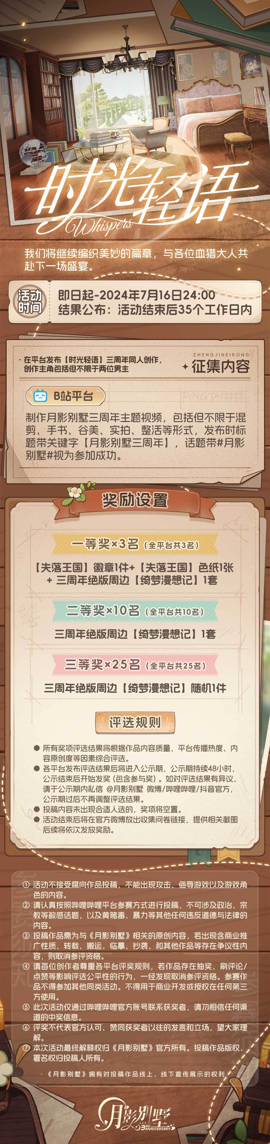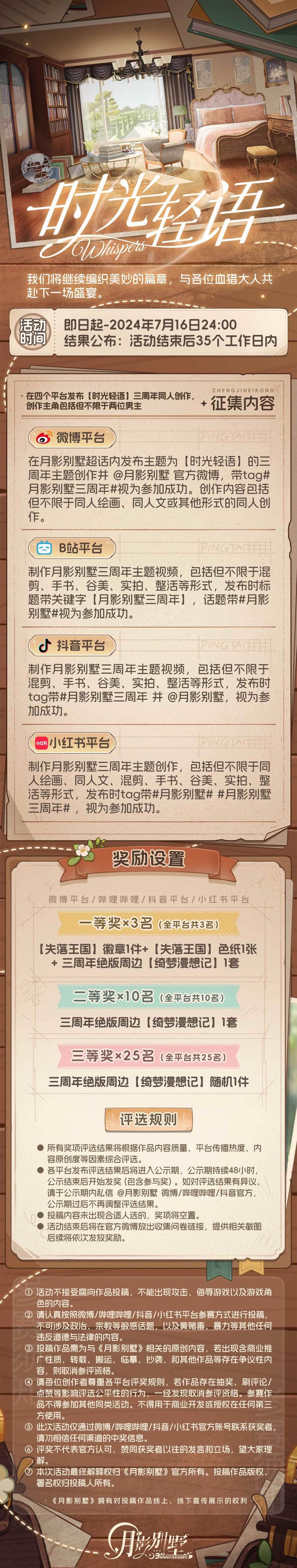 【月影别墅】时光轻语三周年同人创作征集
