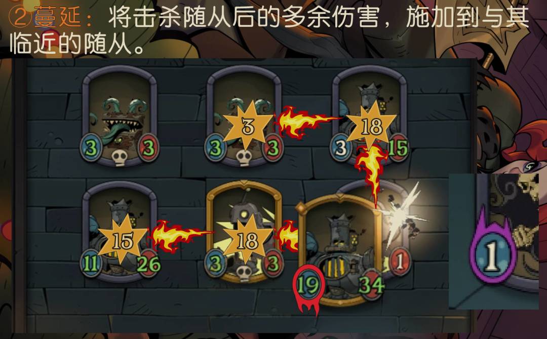 很多人觉得这个词条跟击杀和炉石的超杀很像,确实,就是从这来的,蔓延就有这两个效果的影子,击杀才能触发,击杀随从后多余的伤害会顺延到相近的敌方随从,但是蔓延效果不会回头,经过的格子不会再次经过。