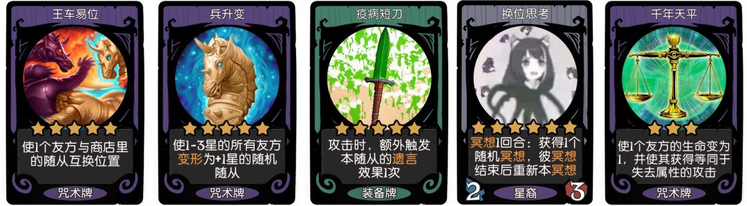 让我们先来分析一下现在的【森灵】,当前【森灵】的技能对标的是五星咒术【吸尘器】,两者都是指定一个友方吸取其他友方一半的属性,这个效果的一般用法是将属性集中到关键随从身上,将前期卖不掉的高身材低费怪,以转换身材的方式重新发挥其价值,在有【幽灵】的局时,可与【幽灵古堡】(属性变化翻倍)起到1+1大于2的效果。