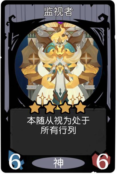 5、行列只是【神】阵营中的一种特色,附魔格子,【监视者】也是可以全部享受到的,因为附魔是格子的光环,不是单一随从身上的。