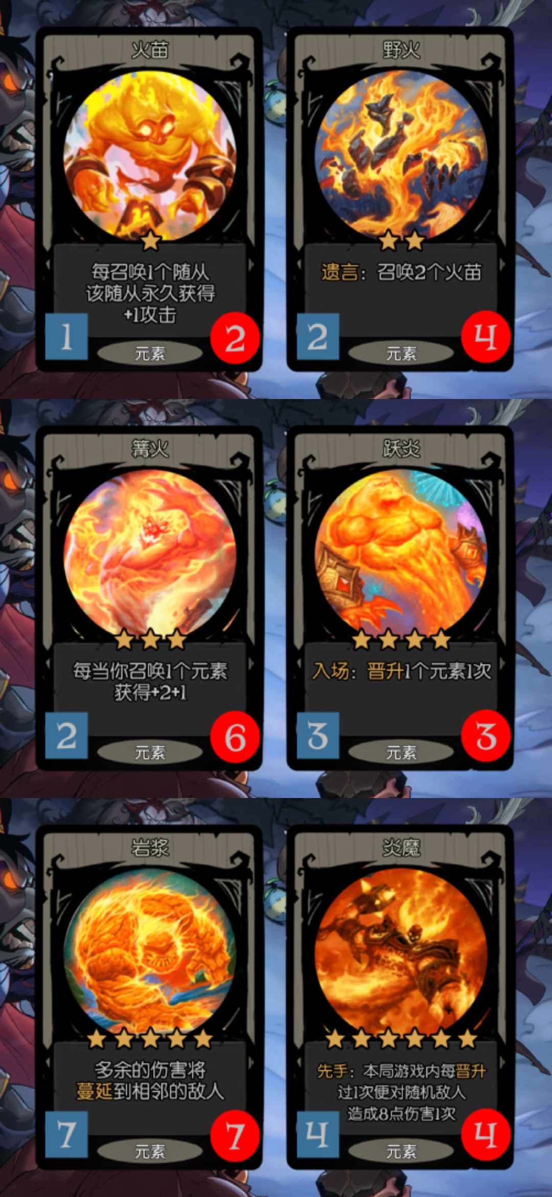 设计一星随从的难度比设计六星随从高三倍不止,在PVP还没有上线之前,我就是PVE的老粉丝,也为其设计了元素阵营,在tap上写了一篇开局如何选择一星随从的帖子,我对一星随从的设计心得总结如下: