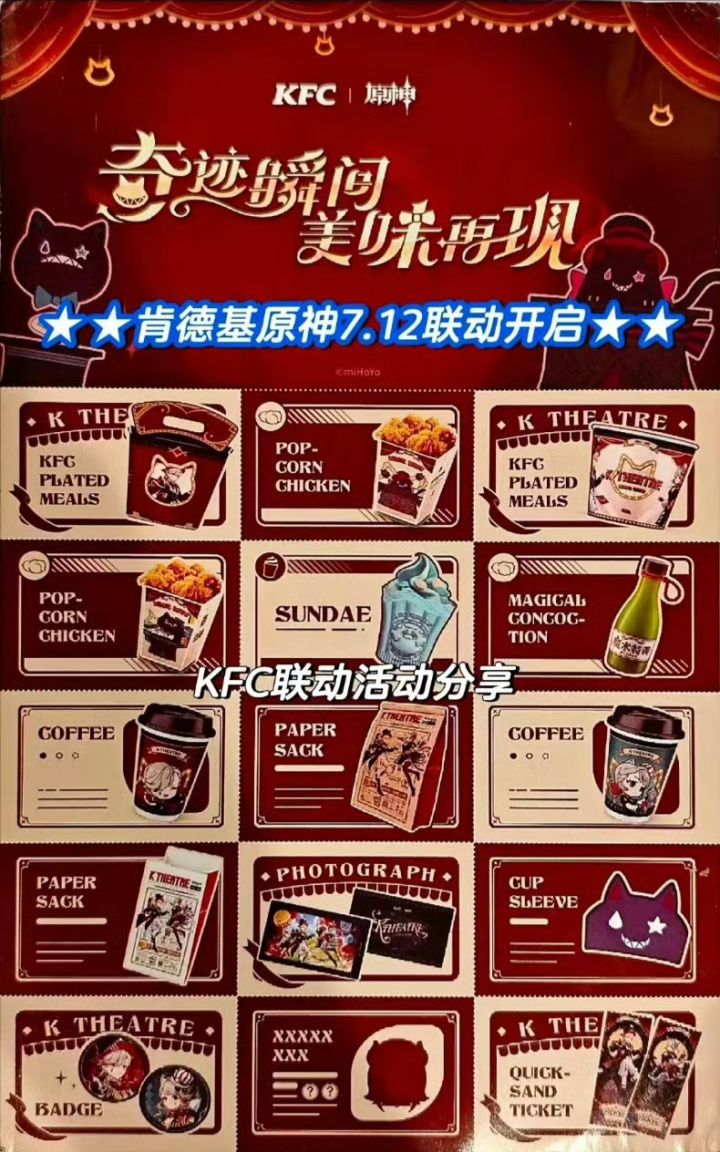 《原神》KFC联动内容疑似在社交平台偷跑,据传闻联动详细内容如下: