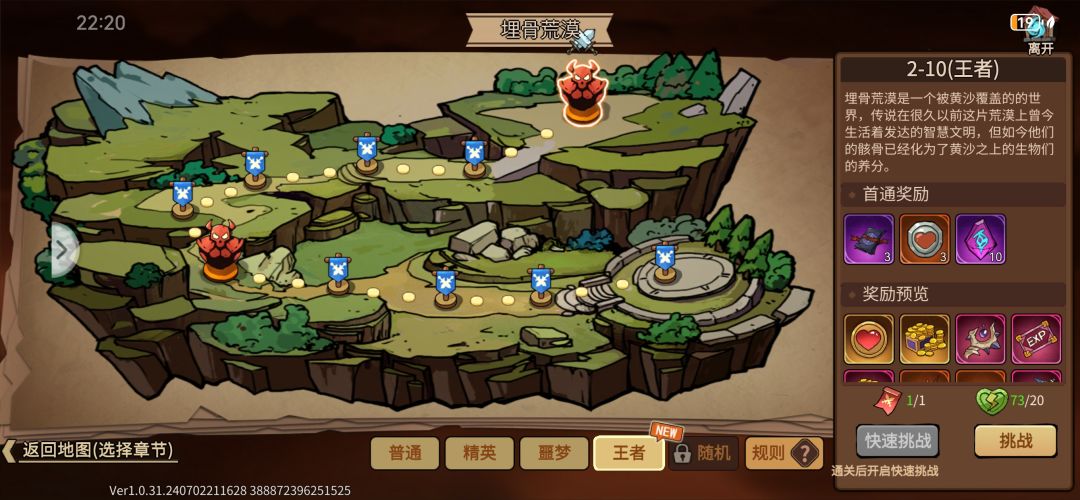 每一个大关的第10小关,都是分为5个难度的,一般来说前三个难度在当前等级的装备比较好的情况下是可以较为轻松的打过的,后两个难度对于装备不太好的平民玩家难度较大,不建议在当前等级通关,而是等换上了更高等级的装备,再回头来打。