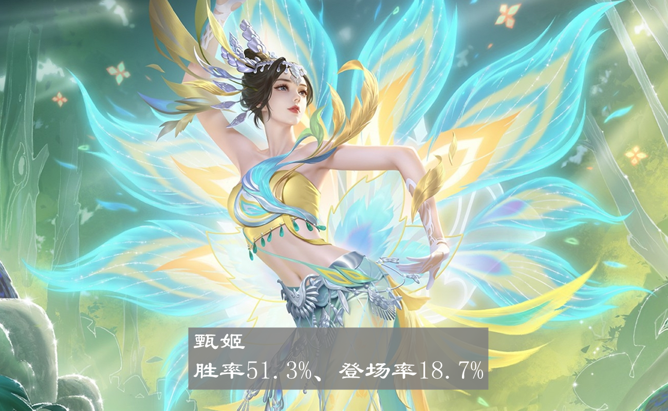 数据能和其他分路相比的英雄只有工具人甄姬一个,51.3%的胜率,18.7%的登场率,再往后的就是刚达标,胜率50.6%,登场率10.7%的西施,以及刚出无双皮肤,登场率飙升至27.3%,胜率50.5%的不知火舞,除此之外就没有胜率在50%且登场率超高10%的英雄了,整体而言中路的上分选择不如其他路。