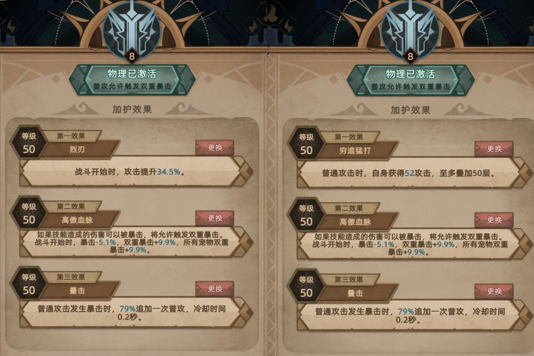 平时挂机、正位悬空城、逆位悬空城选择:烈刃、高傲血脉、叠击。