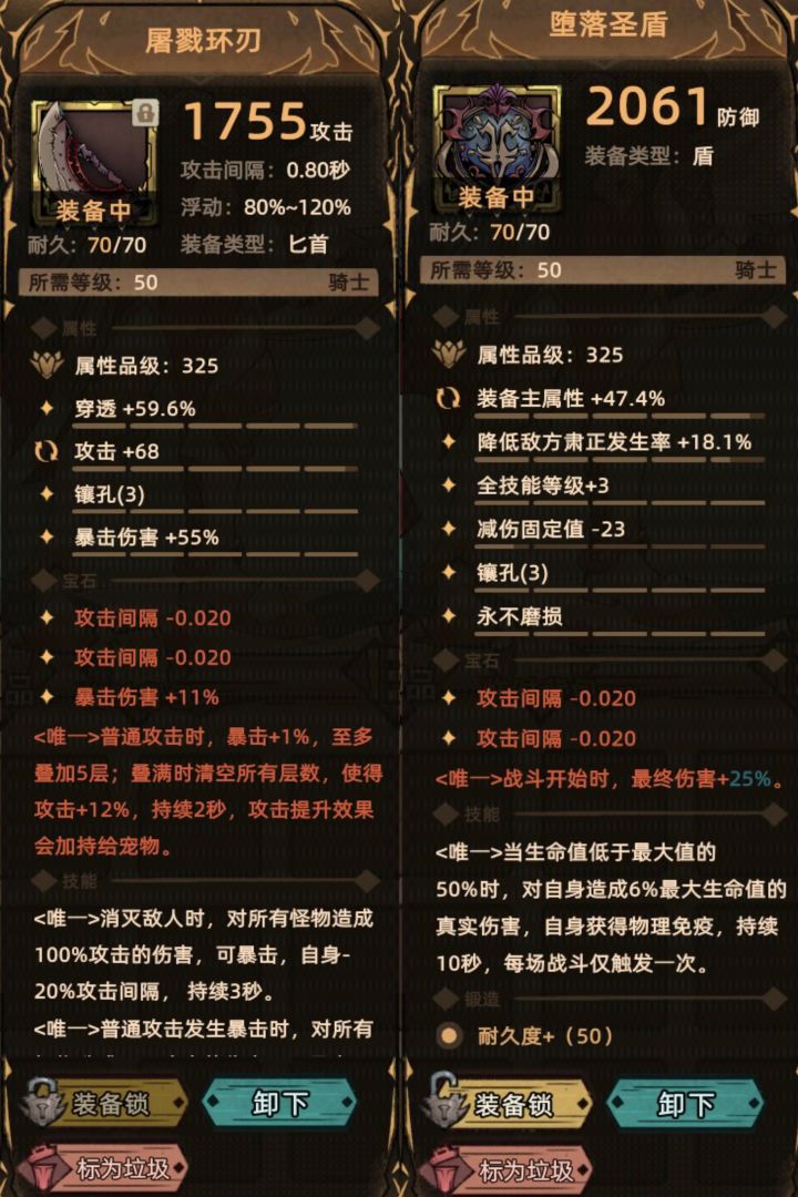 🔪副手:堕落圣盾(暗金装备;魔界深渊5-6几率掉落)