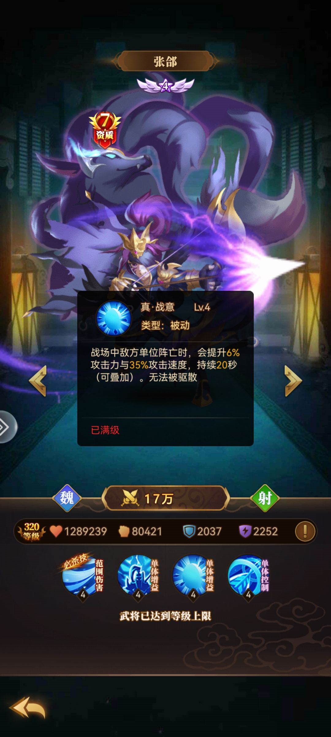 真·战意:而张郃的被动技能则赋予了他越战越勇的能力。每当战场中有敌方单位阵亡时,他都会提升6%的攻击力和35%的攻击速度,持续20秒且可叠加。这一技能让张郃在团战中能够随着战斗的深入成为不可阻挡的杀戮机器。