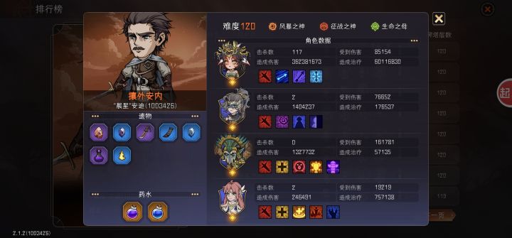 虽然穿刺伤害不高只有61%,总体感觉蛮安逸的;打110到120的时候前三大关大部分都能自动;打120难攘外安内的时候有点顺,三回合搞定BOSS