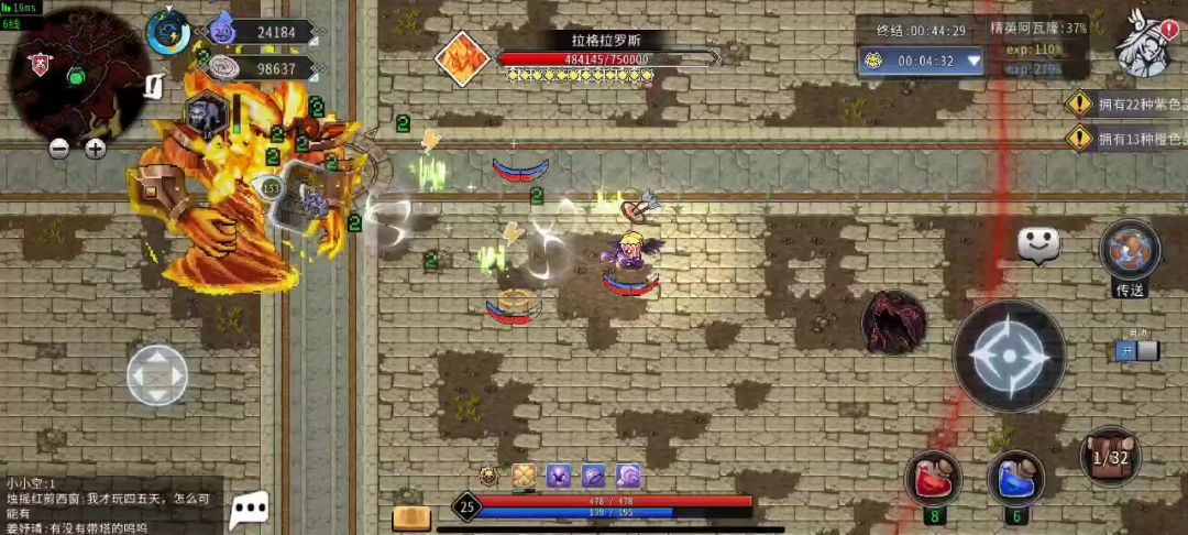 当可以在元素身上打够1%的输出时,就可以尝试跟着终结车(对一般就是我发车摇人)来混一混元素的掉落了。建议萌新把血瓶回复等级和数量往上提一提再来,不然真的很容易一个暴毙回到解放前…