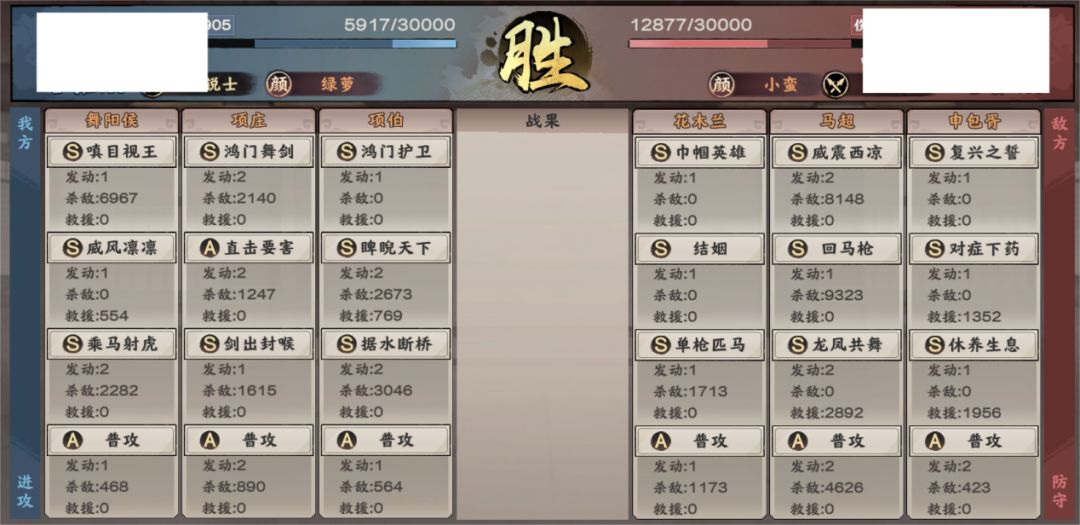 同时,花木兰作为当前版本的热门强力武将,“舞阳侯+项庄+项伯”的配队针对花木兰的多种配对组合都表现出不错的对战优势,另外队伍在对战一些老牌强力队伍也有着不错的表现,具体情况如何,请主公们看下一部分战报展示~