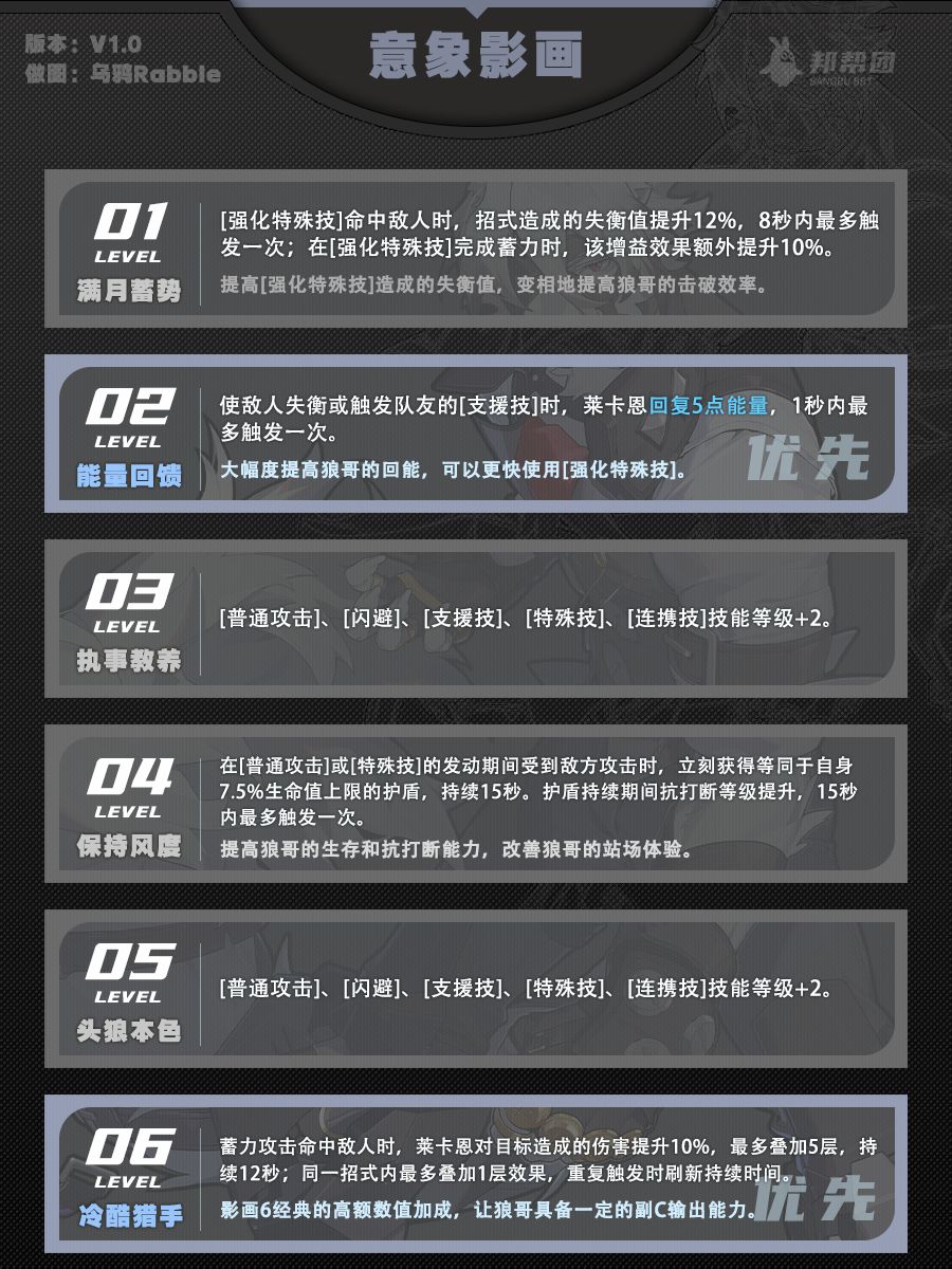 【1.0攻略征集】莱卡恩角色攻略一图流