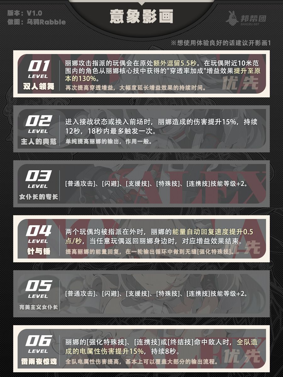 【1.0攻略征集】丽娜角色攻略一图流