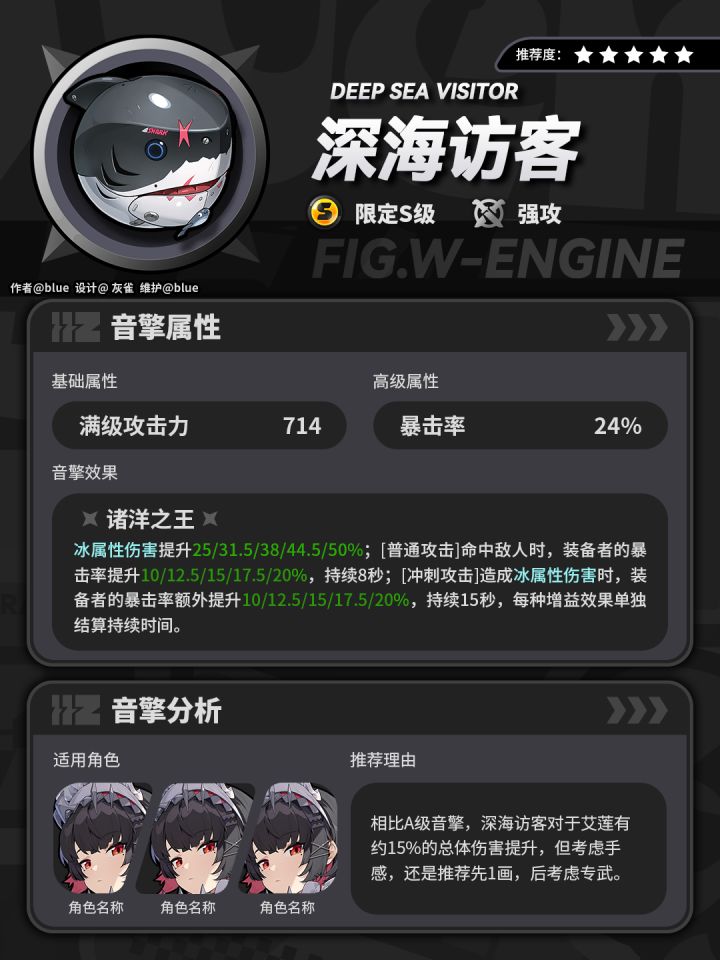 本期音擎池适合有一定氪金预算的玩家,确保鲨鱼妹艾莲1画后,再考虑抽取音擎池。普通玩家建议先确保抽到艾莲。