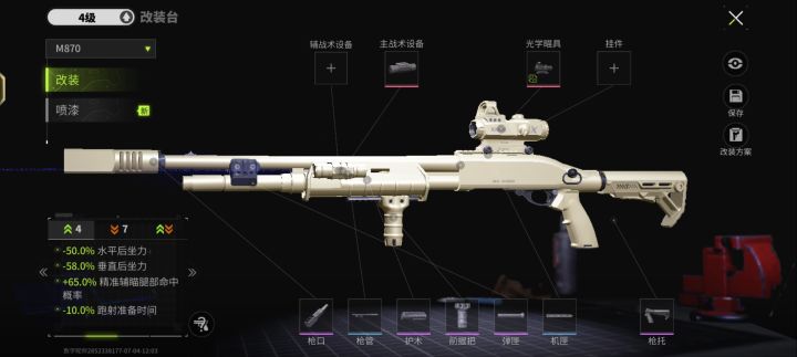 这套装备枪身人机都有,人机手里的枪就够用,不过M870要带枪口,否则发散还是有点大,M870带独头弹是可以当狙击枪用的,有个任务涉及到过,有心的都能想起来,如果想要有更好的体验,可以参考我的改枪,不过SVDS不建议改的太好