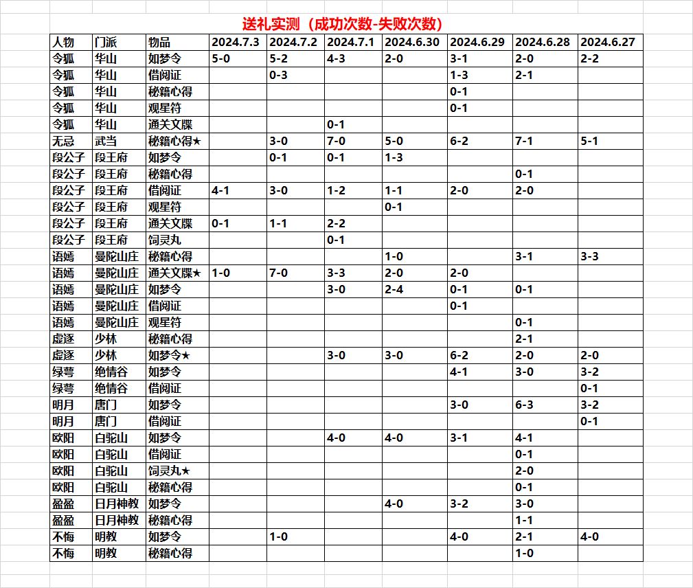如梦令做为最廉价的礼品,适用大部分NPC(段誉你出来,我揍不死你)