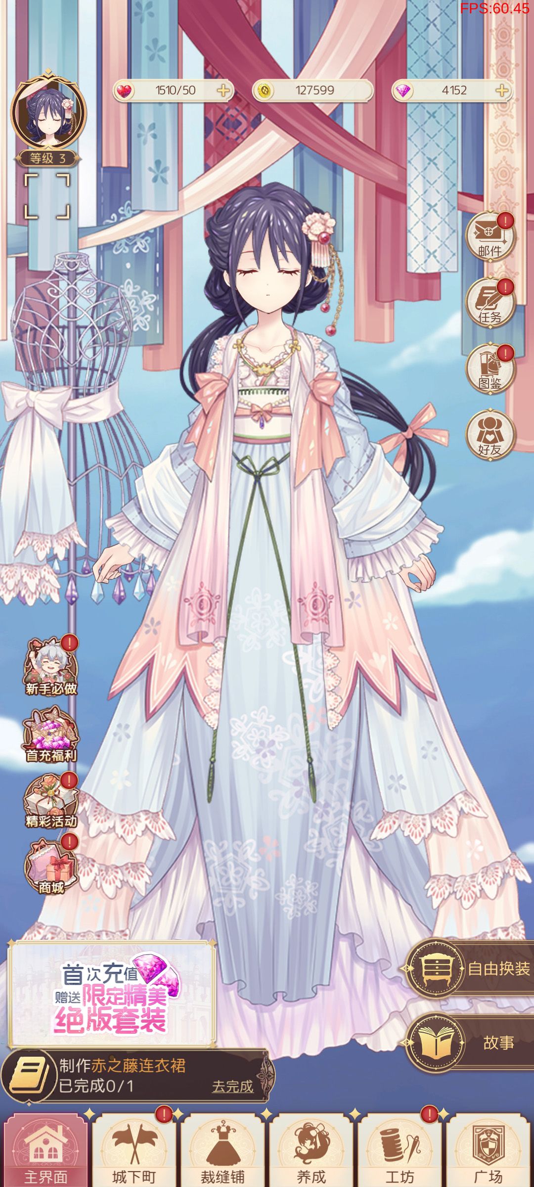 进入自由换装界面:进入【自由换装】界面后,你会看到右侧有各式各样的漂亮衣服和配饰,但是没有一键成装怎么办,不要着急!!