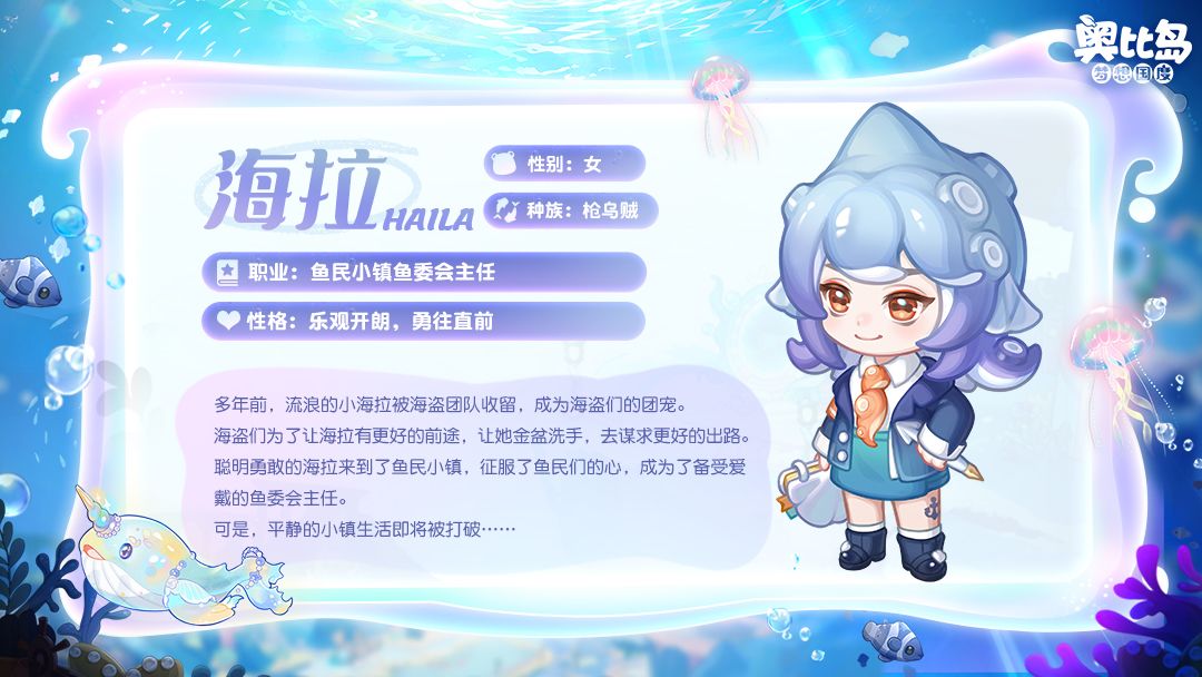 🏴☠️曾经身为海盗团队的团宠,在金盆洗手后,来到鱼委会当主任的乌贼少女——海拉随着海底世界的开放,又有新伙伴加入我们的奥比大家庭啦!兜兜已经迫不及待与新伙伴见面了!不知新朋友们会与小奥比们发生什么有趣故事呢?