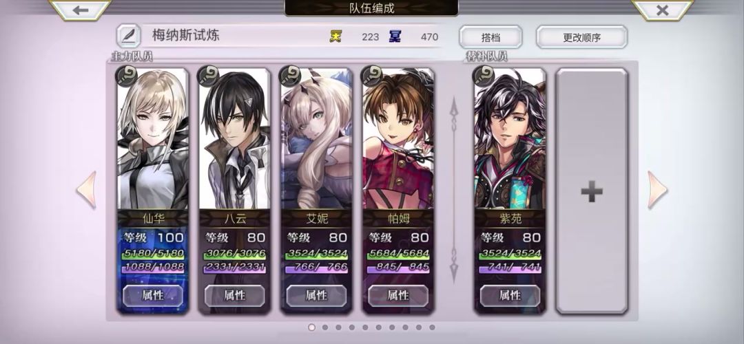 换了宠物以确保帕姆不会倒地,留了以后+迷晶的角色位置。