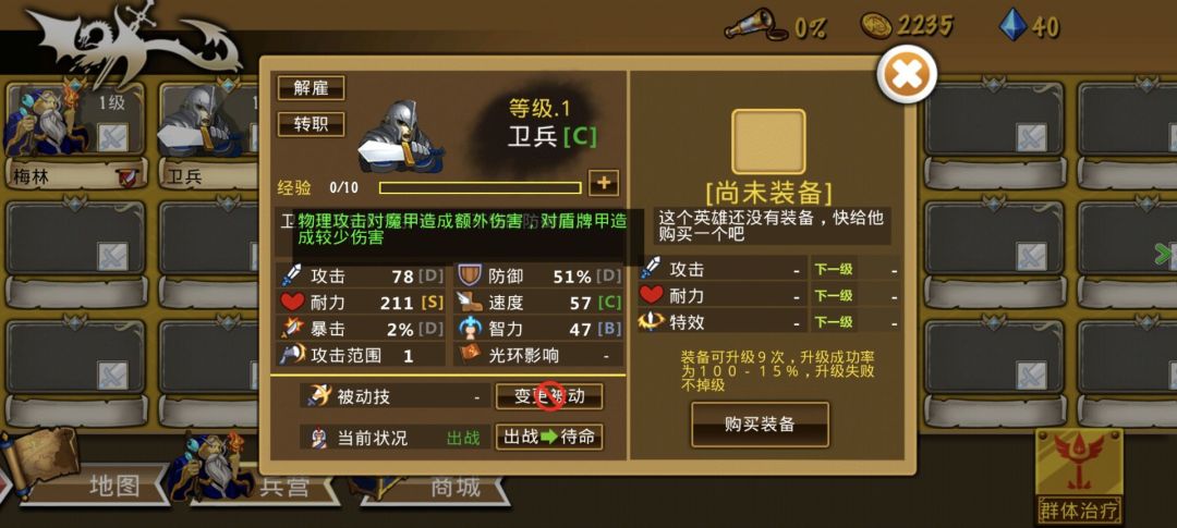 2.推图过程中在未购买兵种未消耗资源点击重玩,我方被打倒的兵种将自动恢复,无需消耗金币恢复血量前期可以省金币