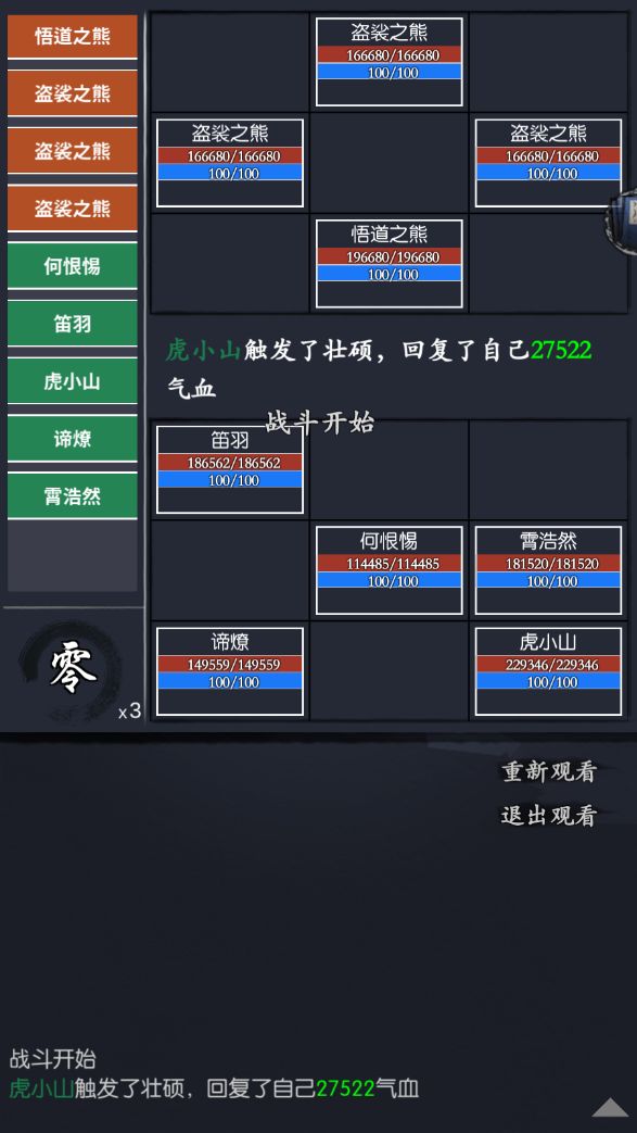 这个大佬的阵容我看了下他是在冥想状态第一次结束之后再杀掉的,大概在10回合左右