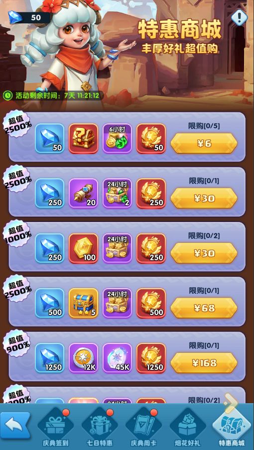 活动期间,开放特惠礼包的购买。