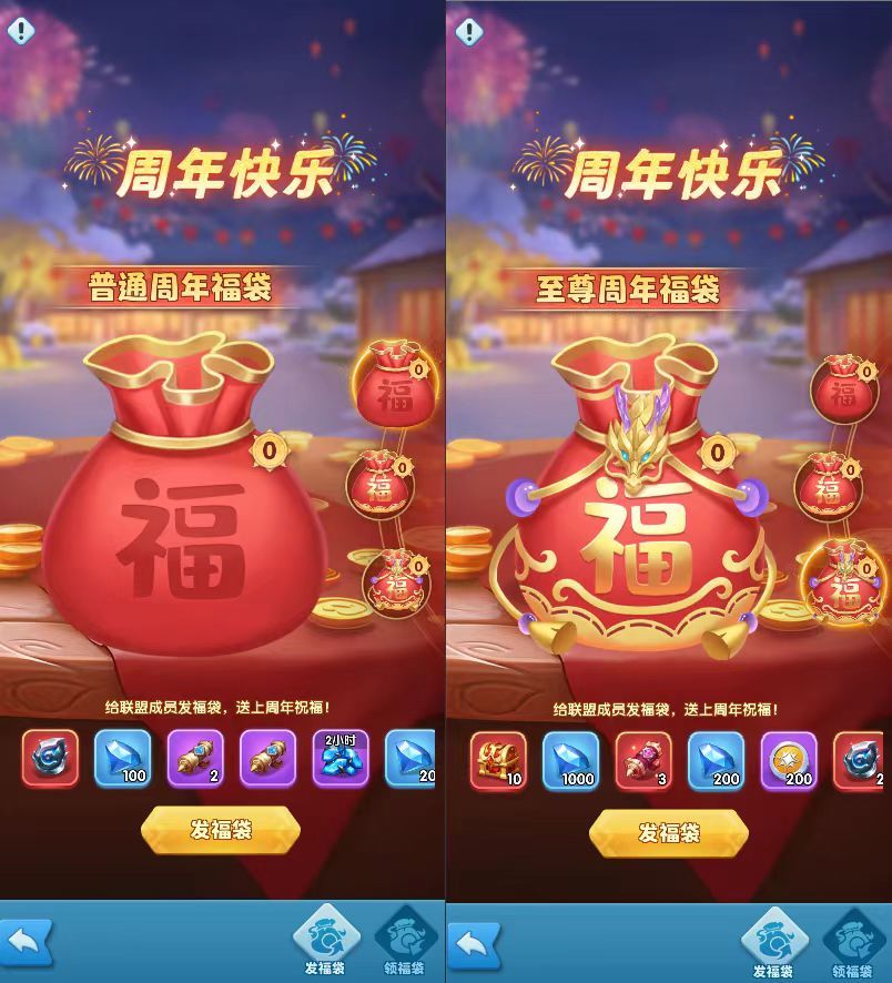 活动期间,旅行者在联盟内可收发福袋,将会获得大量奖励~