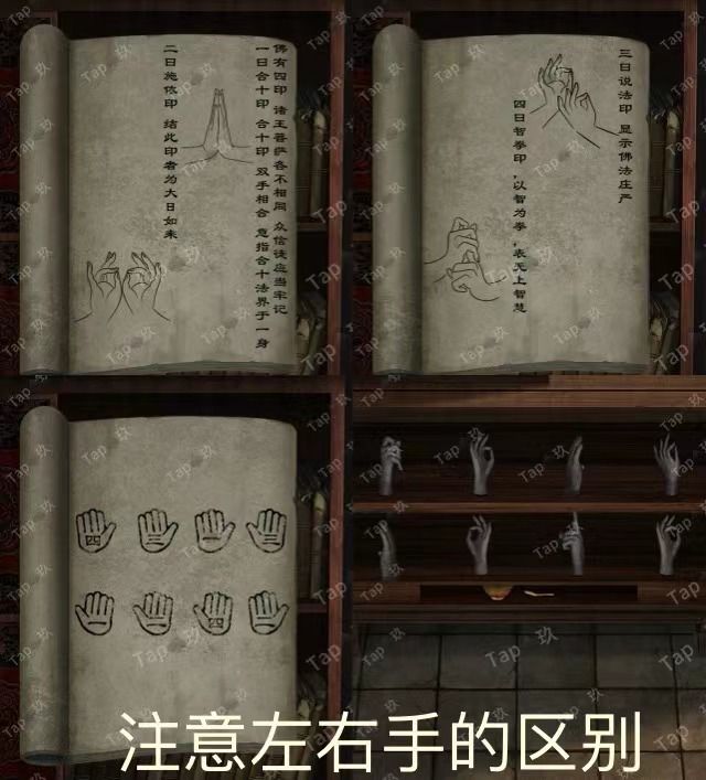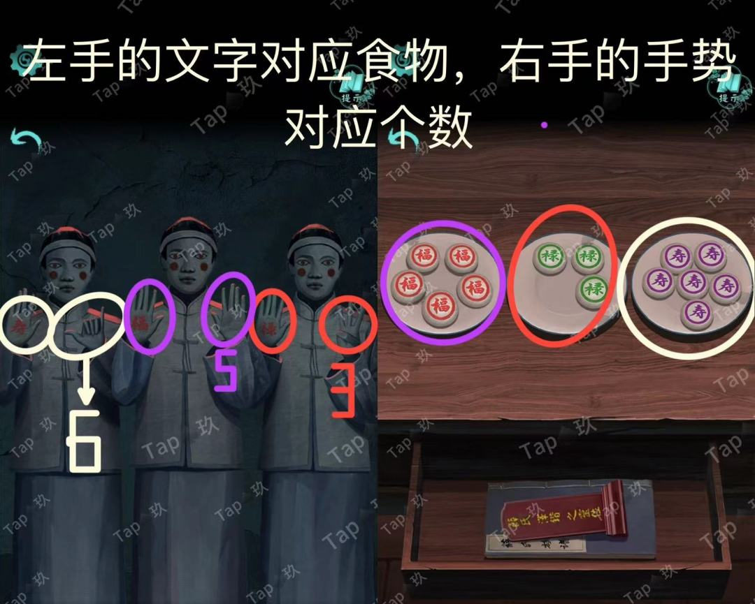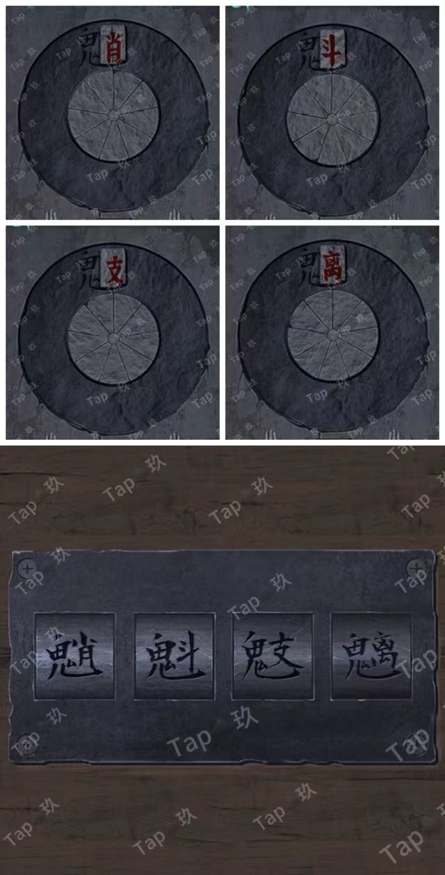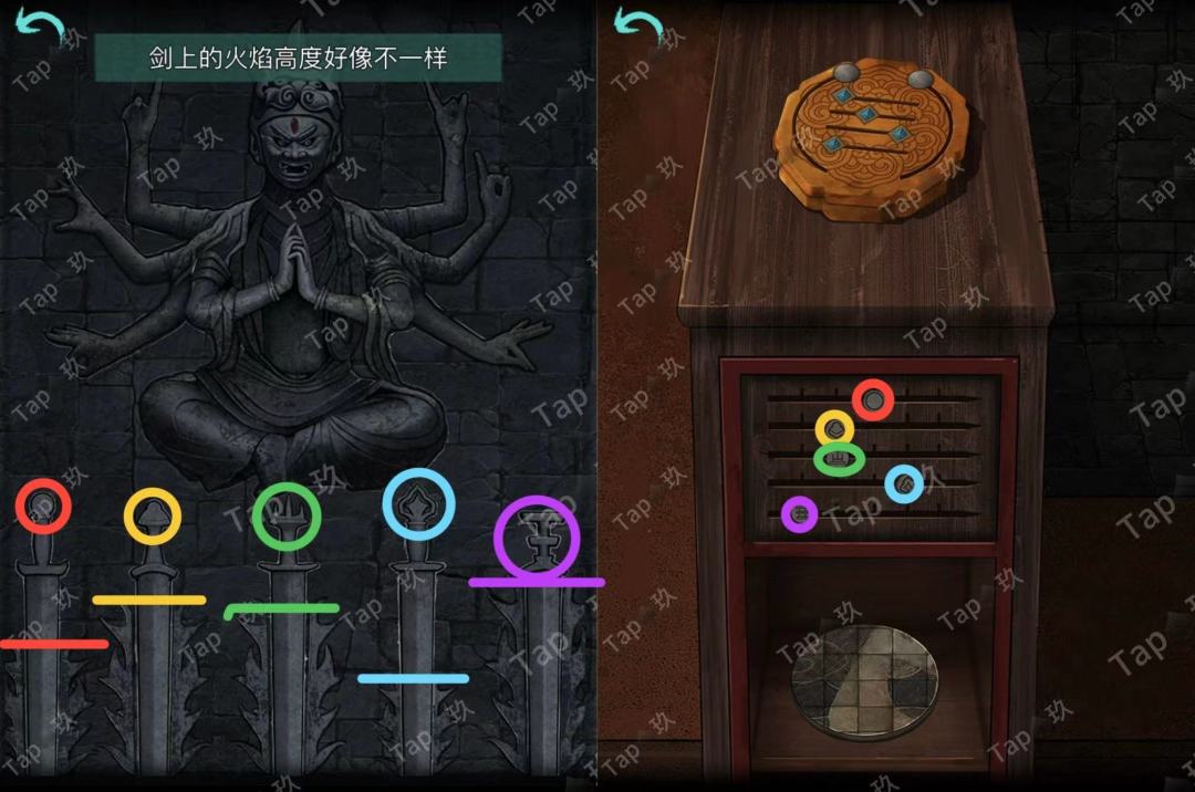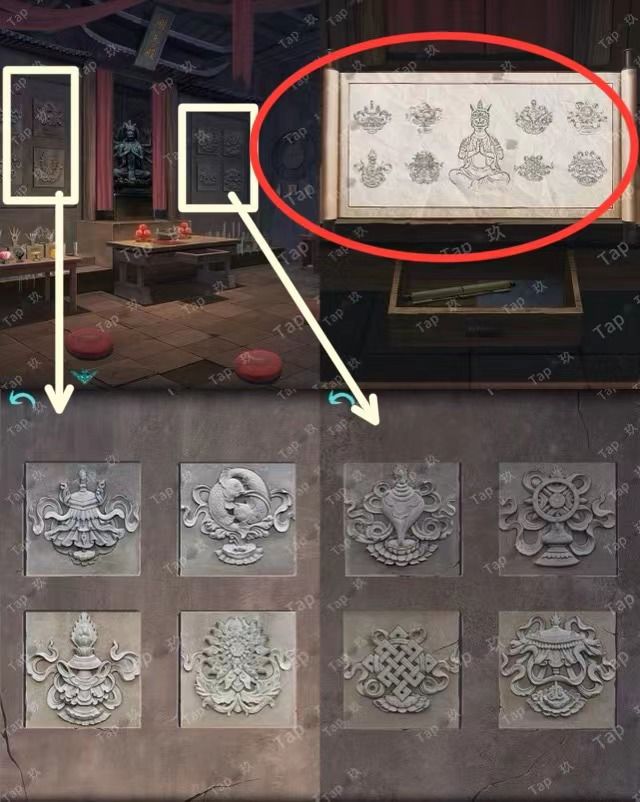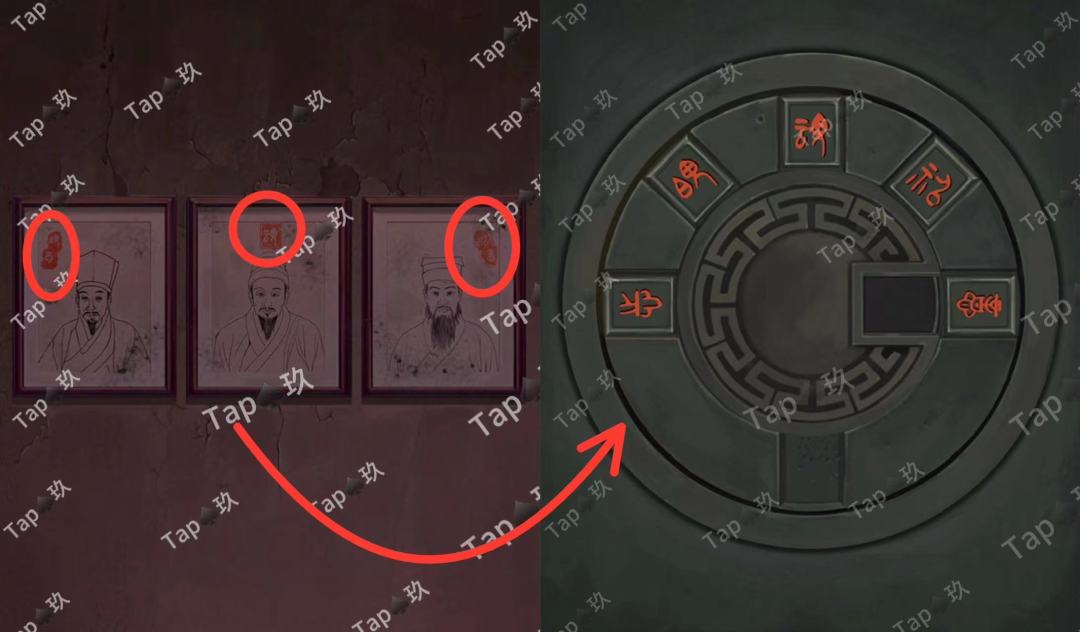 31-点击贡品桌子的抽屉,调整如图,获得【阴火符】和图案与文字线索