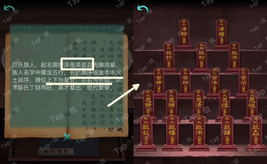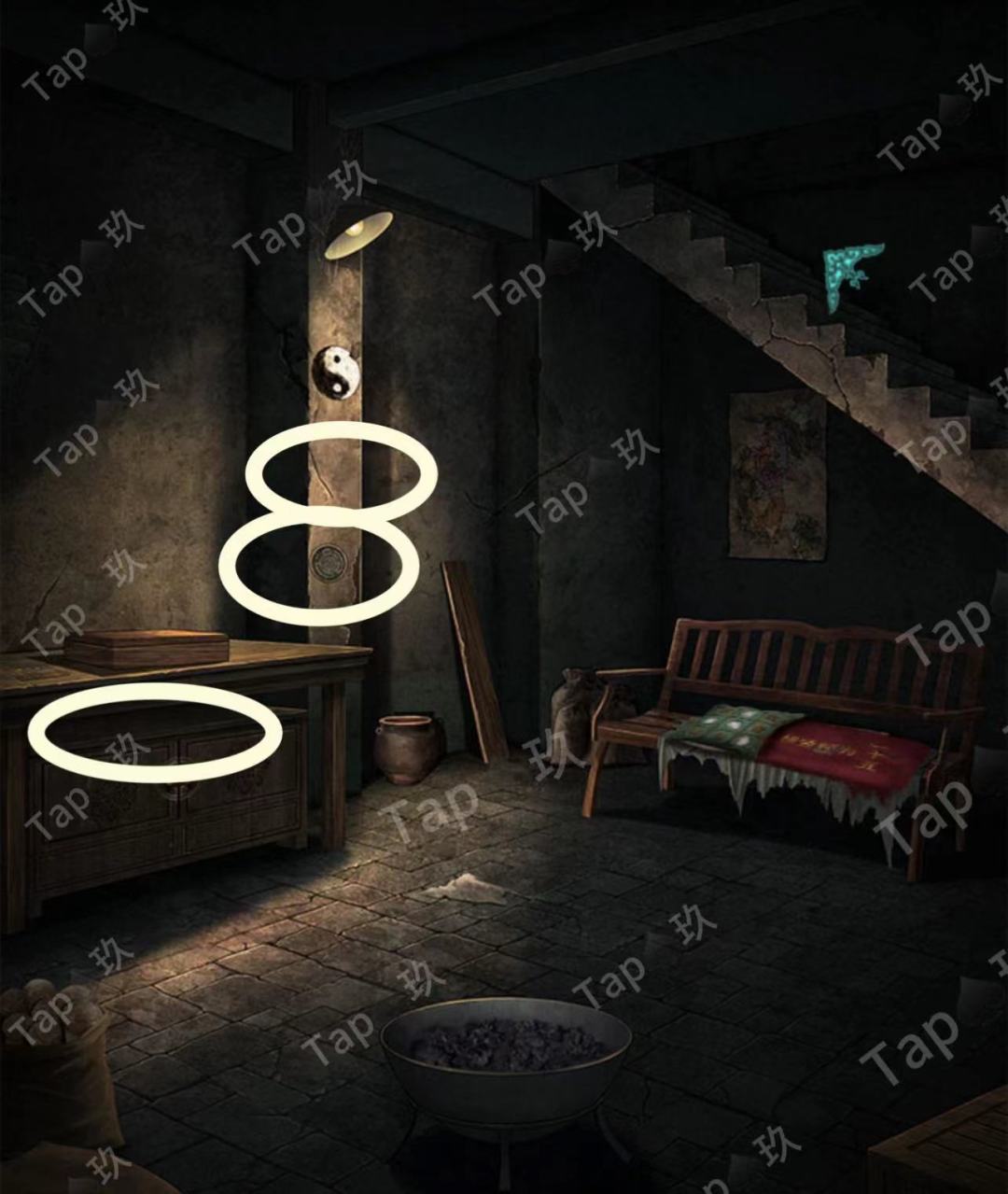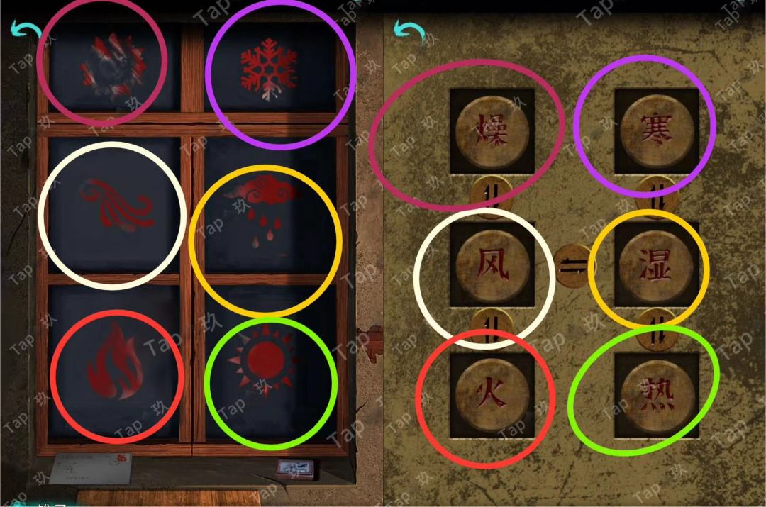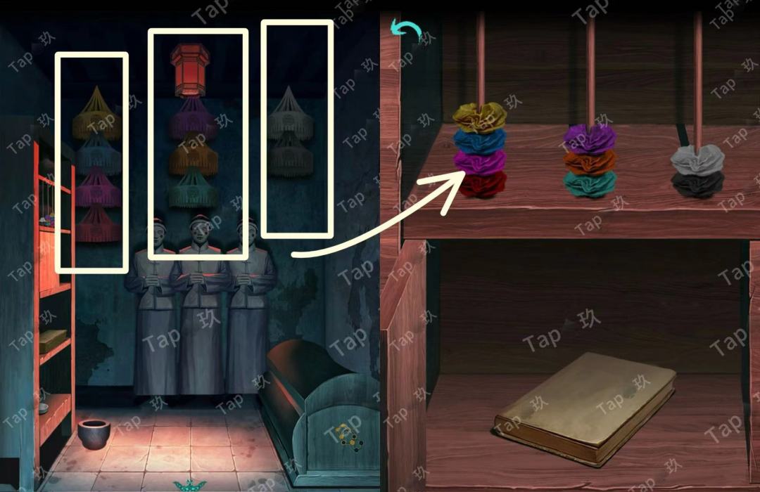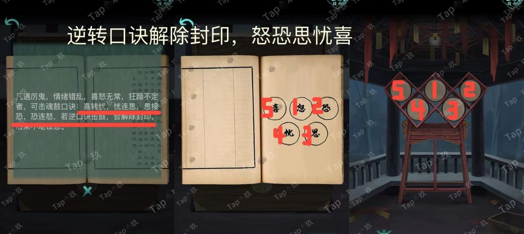 31-点击贡品桌子的抽屉,调整如图,获得【阴火符】和图案与文字线索