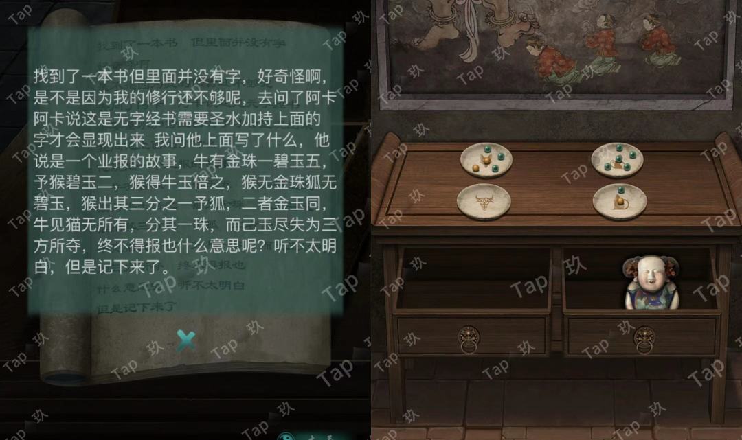 点击挂画下的盘子,结合书中线索调整如图,获得【陶人】