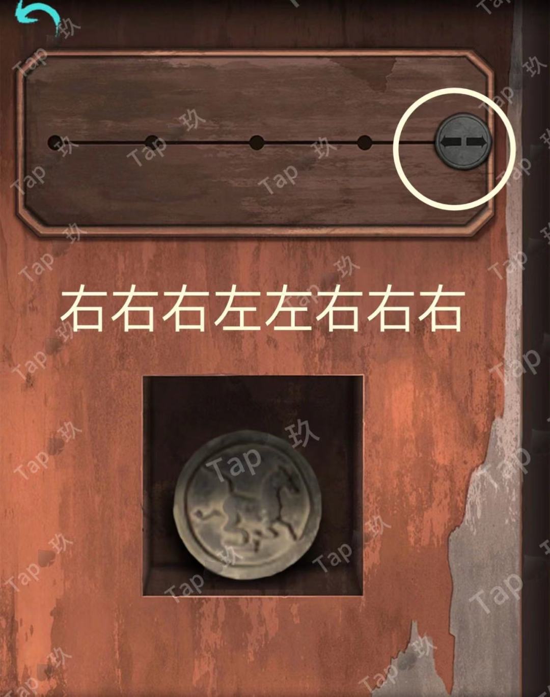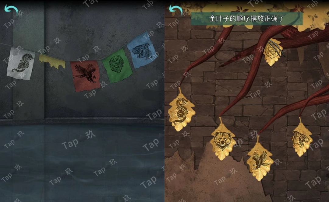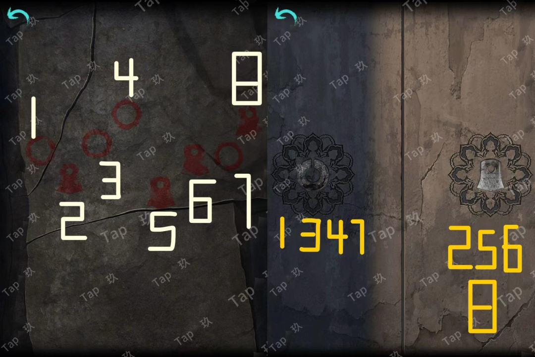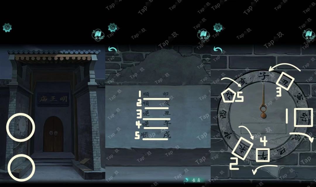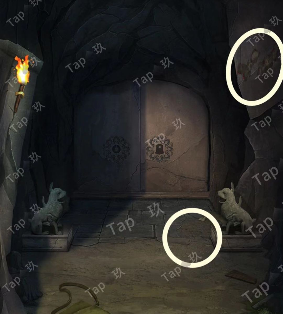 点击石像后的石门,结合【焚烧过的龟甲】点击如图,进入