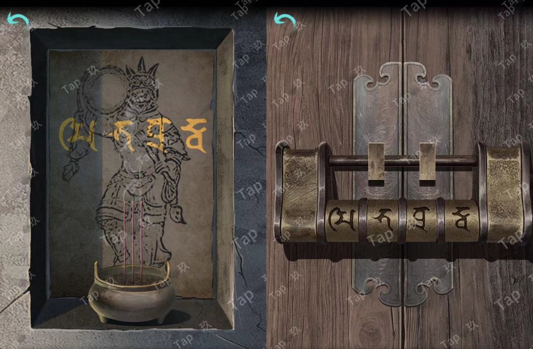 10-点击墙壁壁龛处的明王画像,使用【点燃的线香】,获得线索提示