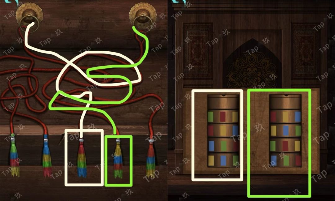 30-点击右侧墙壁上的机关,结合红纸处线索,调整如图获得线索