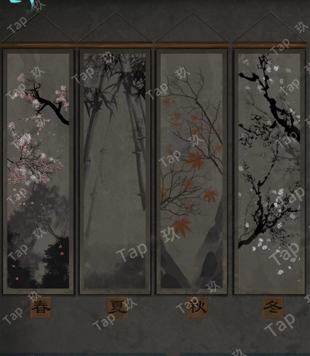 21-点击墙上的挂画,根据季节与植物特点调整如图,获得【照片碎片2】
