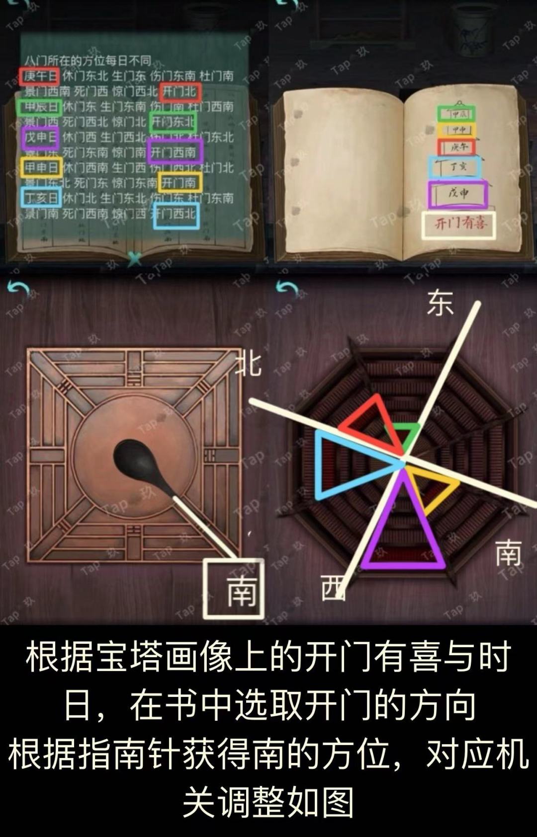 42-点击柱子上的太极图机关,结合火盆里的八字线索,调整如图,获得【红色玻璃珠2】