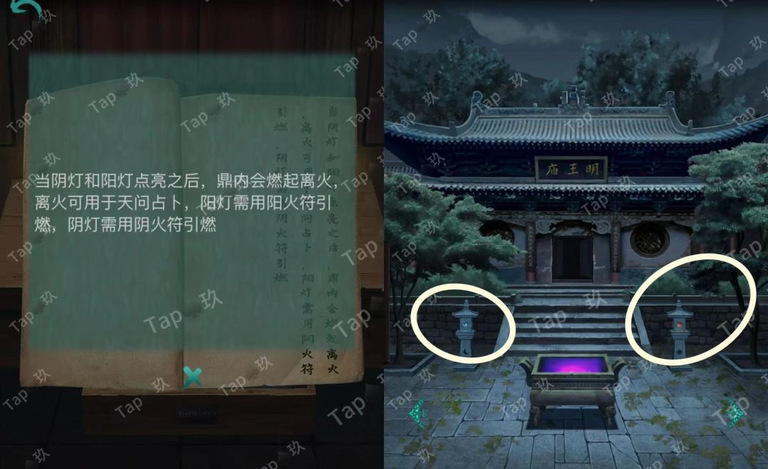 点击鼎两侧石灯,使用【符纸×2】