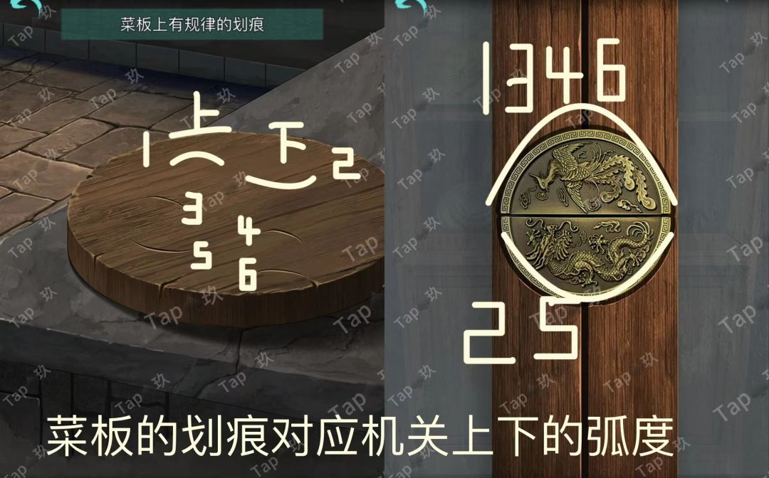 5-点击菜板拾取【菜刀】并观察菜板上的划痕
