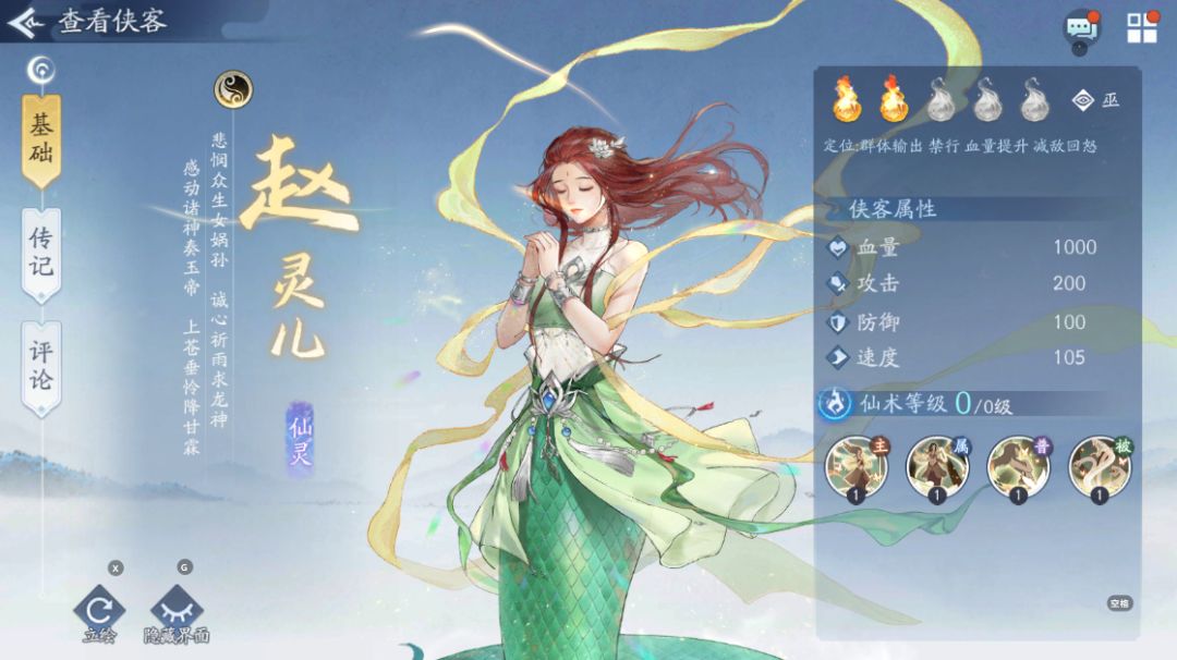 全体侠客带九天玄女(运+运)提高复活可能性,无一例外,尤其是雷月如和阴阳灵儿,必须上最高级的运运控制全部上凤灵,使用侠客为阴阳灵儿、火阿奴、火77、水月如、水元戈,尤其是是水元戈和水月如,必须优先保证火77和火阿奴带上鲸灵,