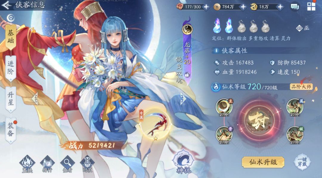 1号位阴阳灵儿——怒招“止戈”配合“神盈”,一旦“阴阳灵儿”率先出手,我方极有可能面临1至3名侠客无法行动的局面,同时,“神盈”还能为敌方输出提供稳定的怒气保障,使我方陷入被动,战力指数SSS