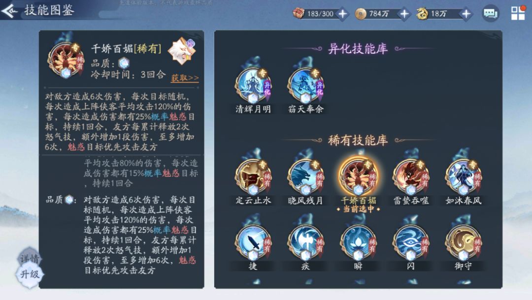 幻灵以增加负面命中率,增加全体减伤作为优选技能,也可以带个狐狸争取魅惑多点侠客。