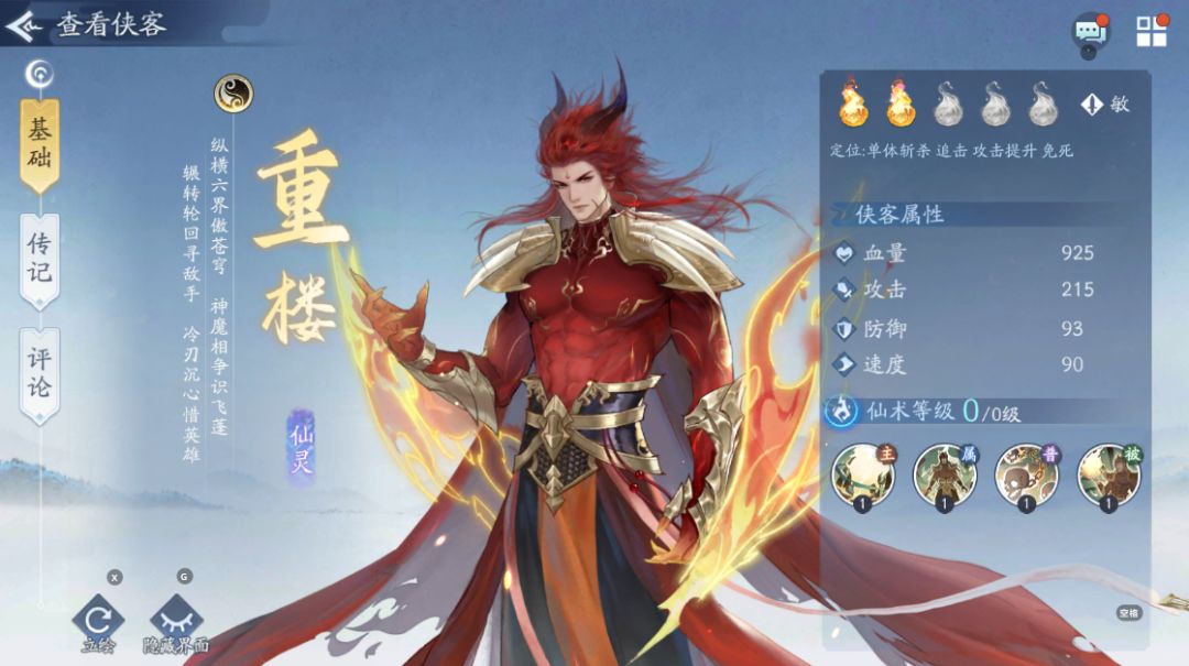 5号位重楼——冥火追击技能后,搭配其免死的被动效果,能够显著提升角色的生存能力,使其在战场上存活更久。同时,其输出能力也相当可观,一旦发动行动,往往能够轻易带走我方的一名侠客,为我方带来极大的威胁,战力指数SS