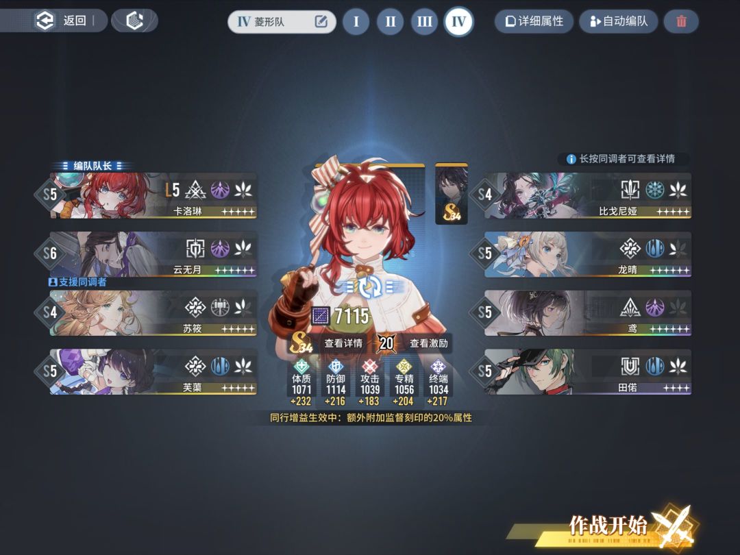 一阶段先上云大佬➕比戈➕鸢➕龙晴,开局爆油桶比戈叠消融,龙晴叠激励,云大佬切防御。