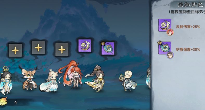 同样我们在这期间也会遇到属性卡片 这里我们选择加我们前排弟子护盾的 加暴击伤害的 还有加暴击率的和反射伤害的 这里就不细说了 祖师大大们应该知道怎么选择