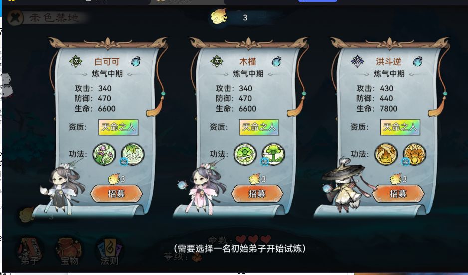 在前5回合左右 我们有足够的机缘货币招募到5名弟子 不管弟子好坏 优先凑齐5名弟子