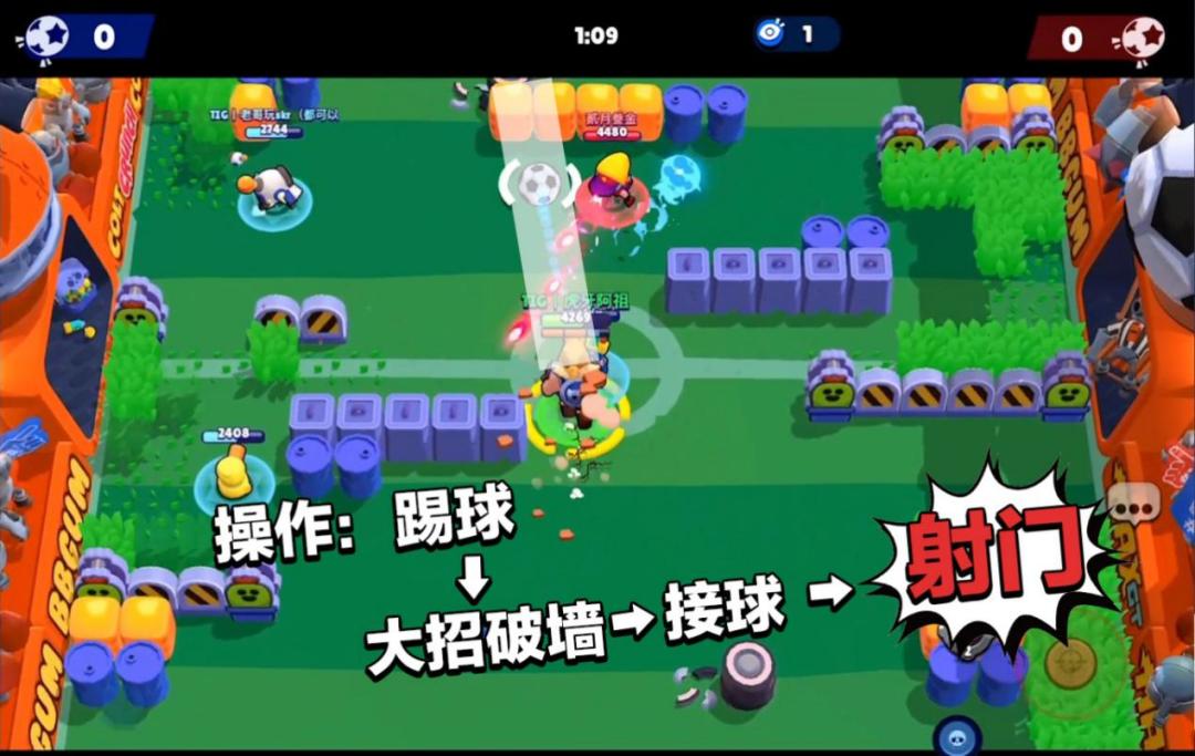 (相同操作的有:柯尔特、布洛克、雪莉等,利用超级技能摧毁球门前障碍物)