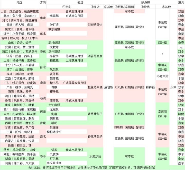 旅行目的地地区搭配表
